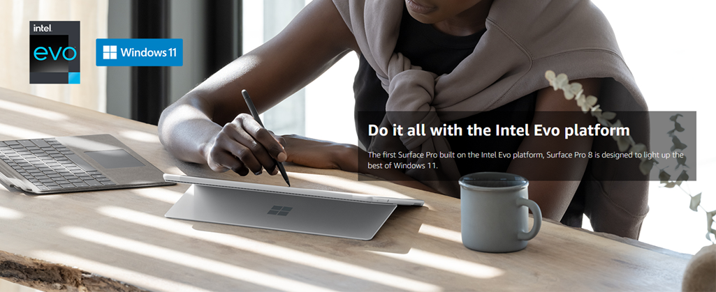 Unlock more possibilities than ever with the Pro designed for a Pro like you. The first consumer laptop-to-tablet PC based on the Intel® Evo™ platform and designed to light up the best of Windows 11, Surface Pro 8 combines the power of a laptop with the flexibility of a tablet, and every angle in between, with the iconic Kickstand and detachable Keyboard* with built-in Slim Pen storage and charging.** Do great things with a larger 13” touchscreen, faster connections with Thunderbolt™ 4 ports, and extra speed when you need it.