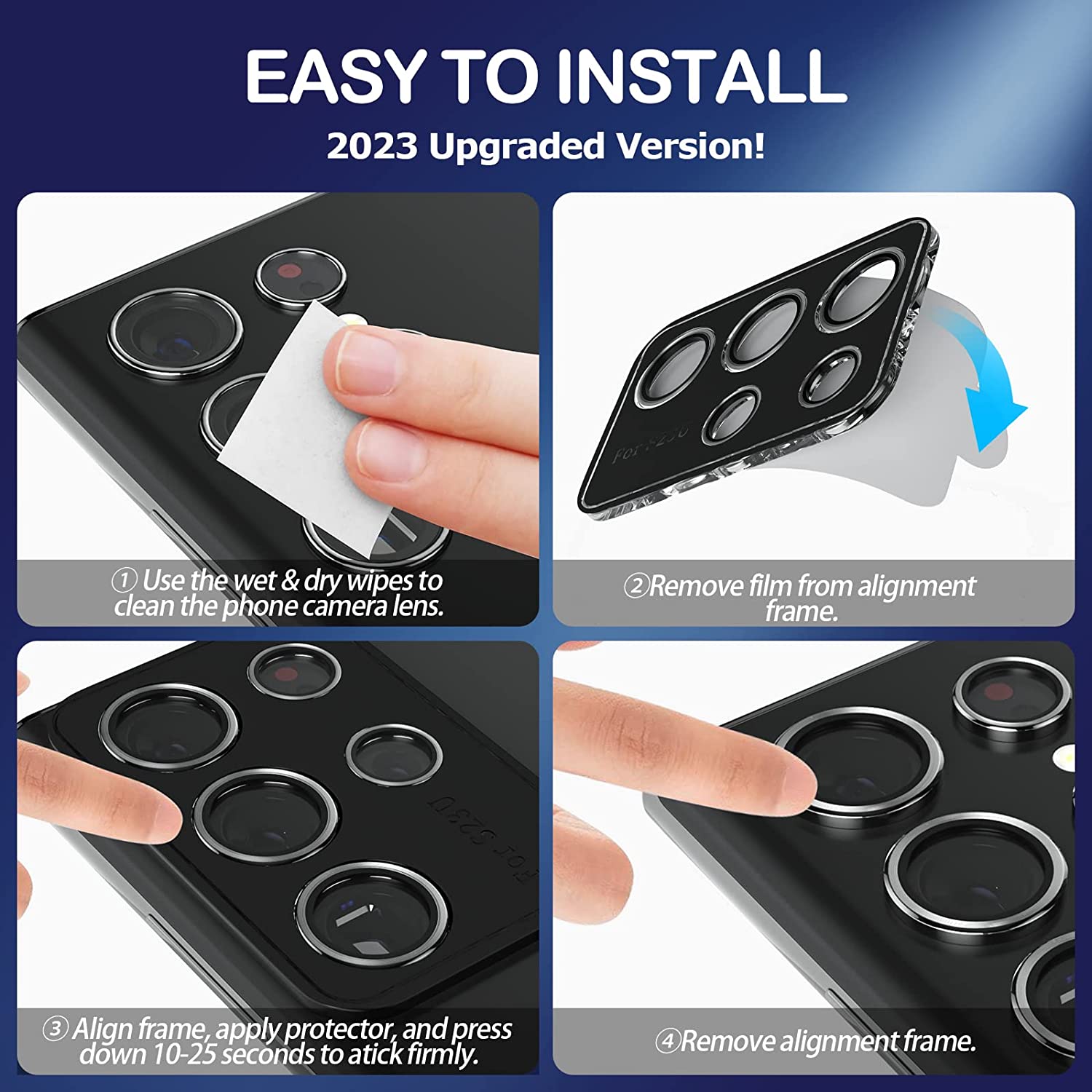 - 【Simple Bubble Free Installation】Our innovative simple installation artifact ensures that you can quickly, accurately and bubble free install the Lens Protector for Samsung Galaxy S23 or S23 Plus. Please clean the lens before installation.
