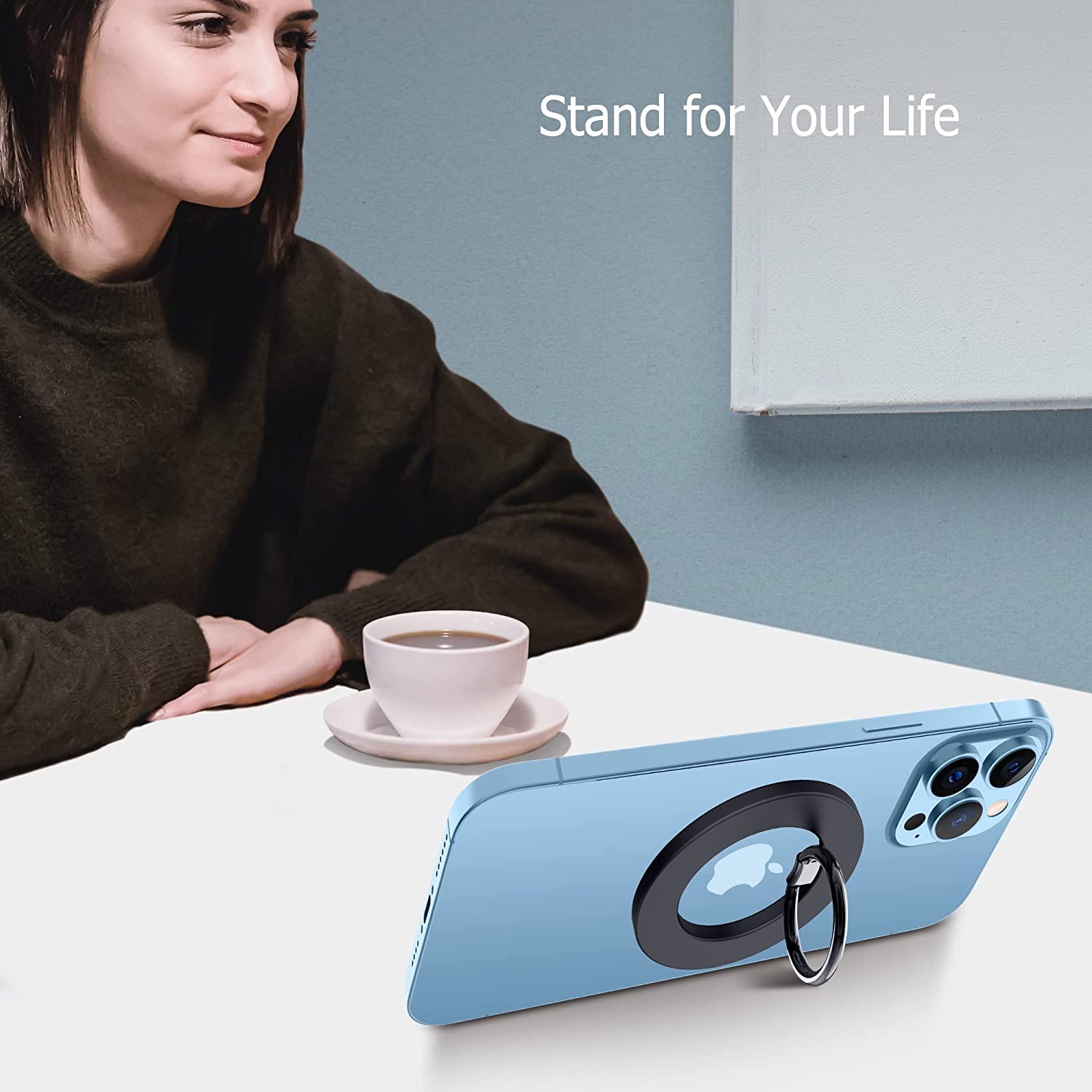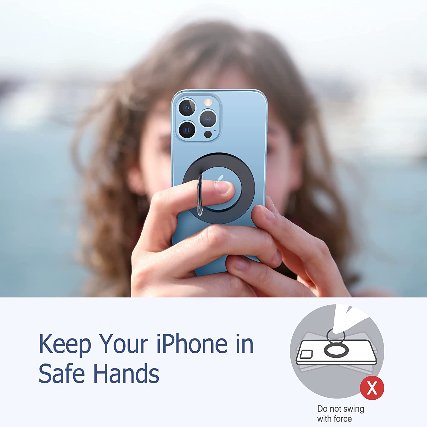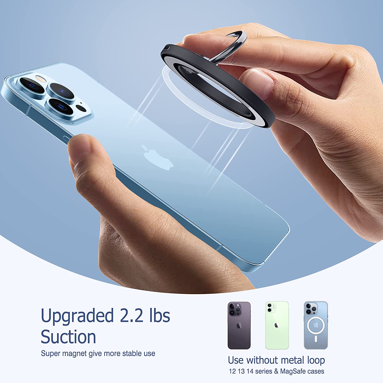 • Super Strong Magnetic: Lightweight ring holder with a strong magnetic grip ensures it sticks tightly to your iPhone 14 13 12. It's so strong that it can hold up to 1000 g, which is equivalent to the weight of 4 iPhone 14. (Note: Use without a case or with an iPhone-compatible magnetic phone case)