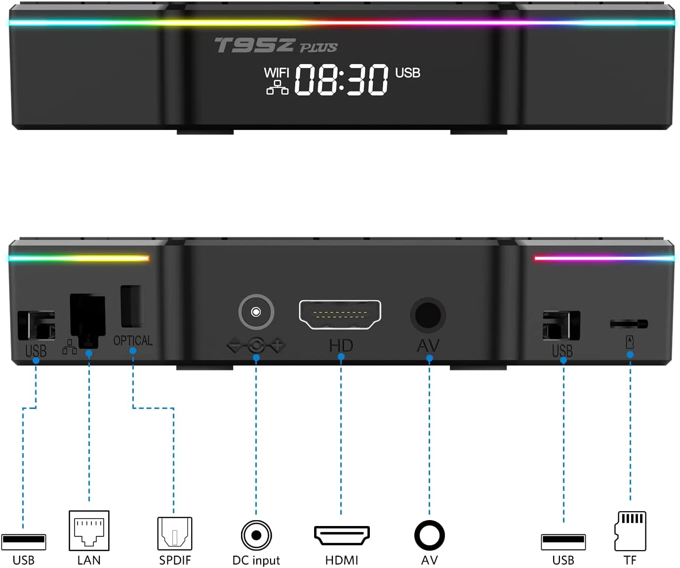 Android TV Box, T95Z Plus Android 12.0 TV Box Allwinner H618 Quadcore 2GB RAM 16GB ROM Support 6K 3D 1080P 2.4/5.0GHz WiFi BT5.0 10/100M Ethernet HDMI 2.0 H.265 Smart TV Box