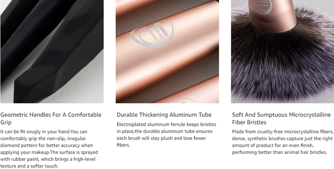- - The handle of the hand brush is made of high-quality plastic, with diamond cut design, and the surface is sprayed with rubber paint. It is very comfortable to touch, anti-slip, and easy to hold for a long time. The metal hoop on the gold frosted surface is not easy to produce scratches, and is wear-resistant and durable. Smooth makeup