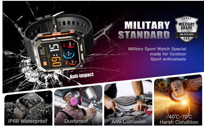 - 【Fitness Smartwatch for Outdoor enthusiasts】This Meoonley Sportwatch designed for outdoor enthusiasts.It pass Military Standard Verification. It can work in most of extreme conditions.And it support IP68 Waterproof standard.You can wear this sport watch while washing hands, walking in the rain or swimming even underwater sports. It can meet all your daily needs even underwater exploration.To enjoy the fun of outdoor exploration.