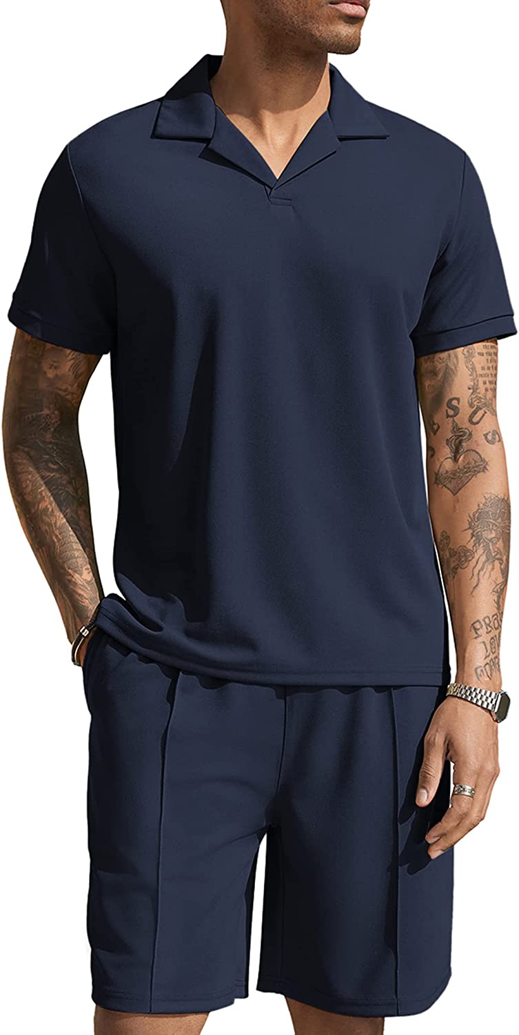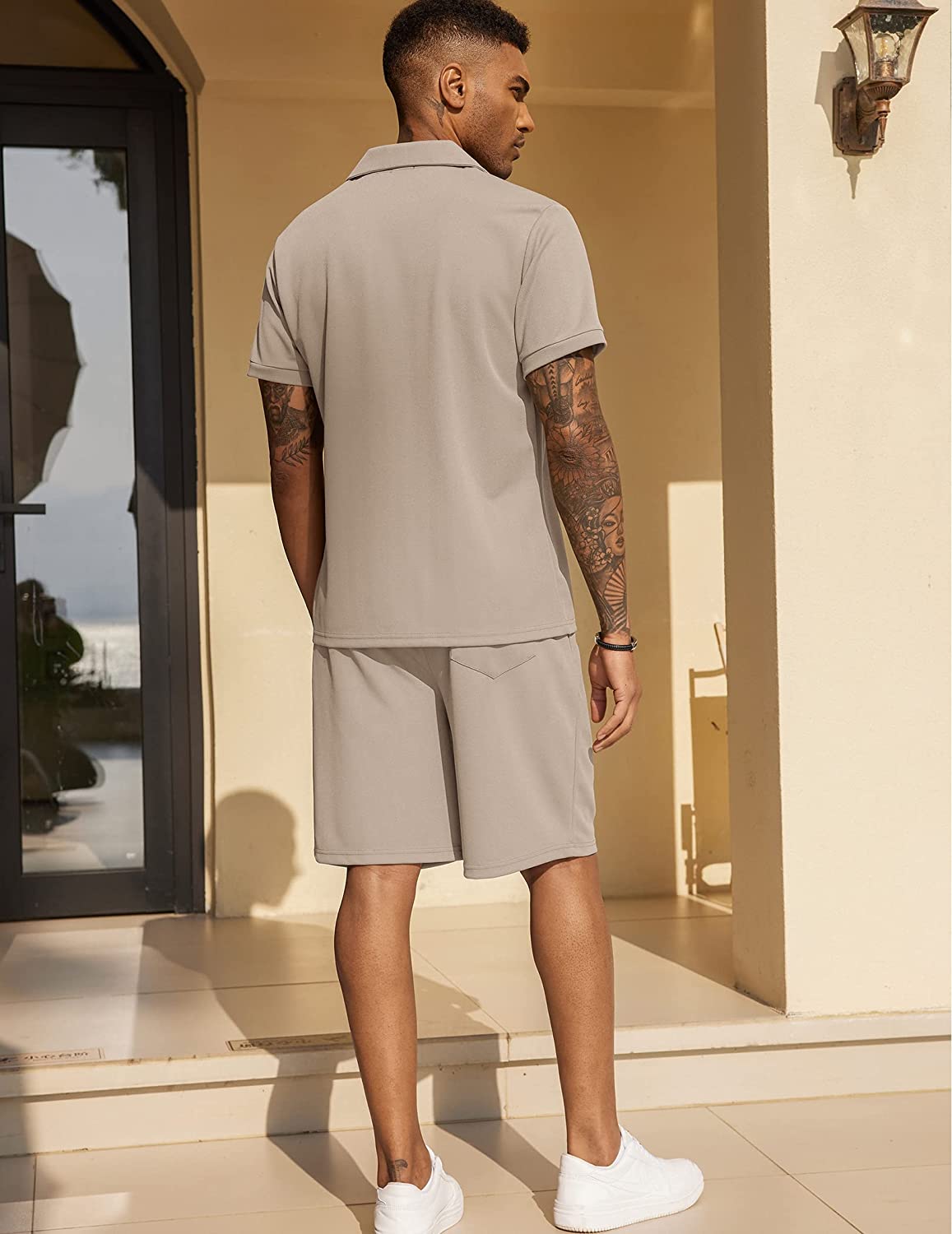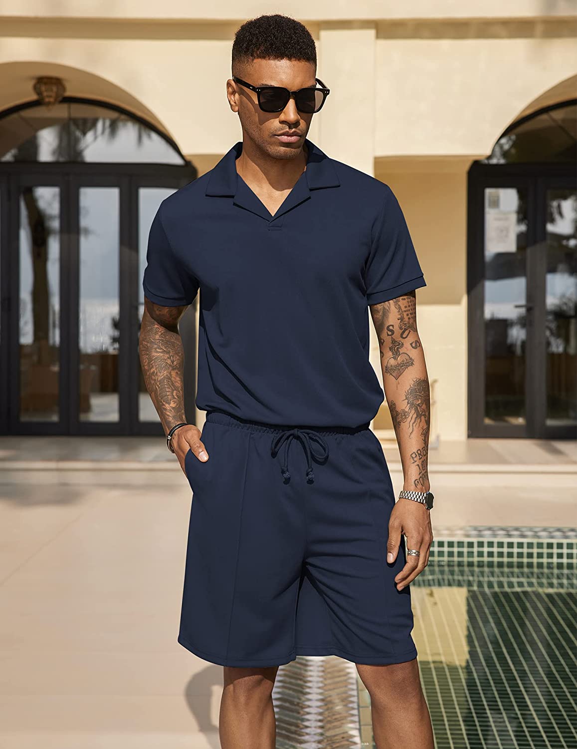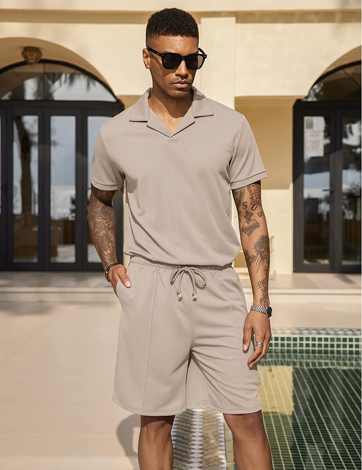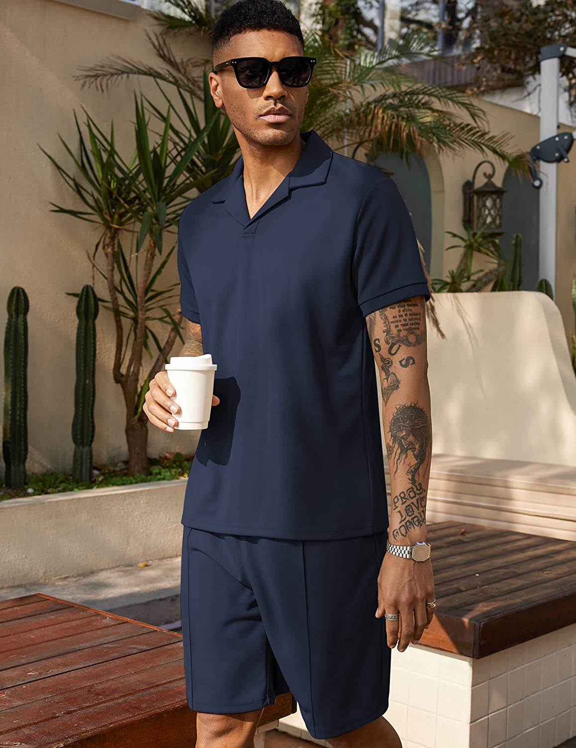 COOFANDY Men's Polo Shirt and Shorts Set Summer Outfits 2 Piece Shorts Tracksuit Fashion Casual Short Sleeve Polo Suit