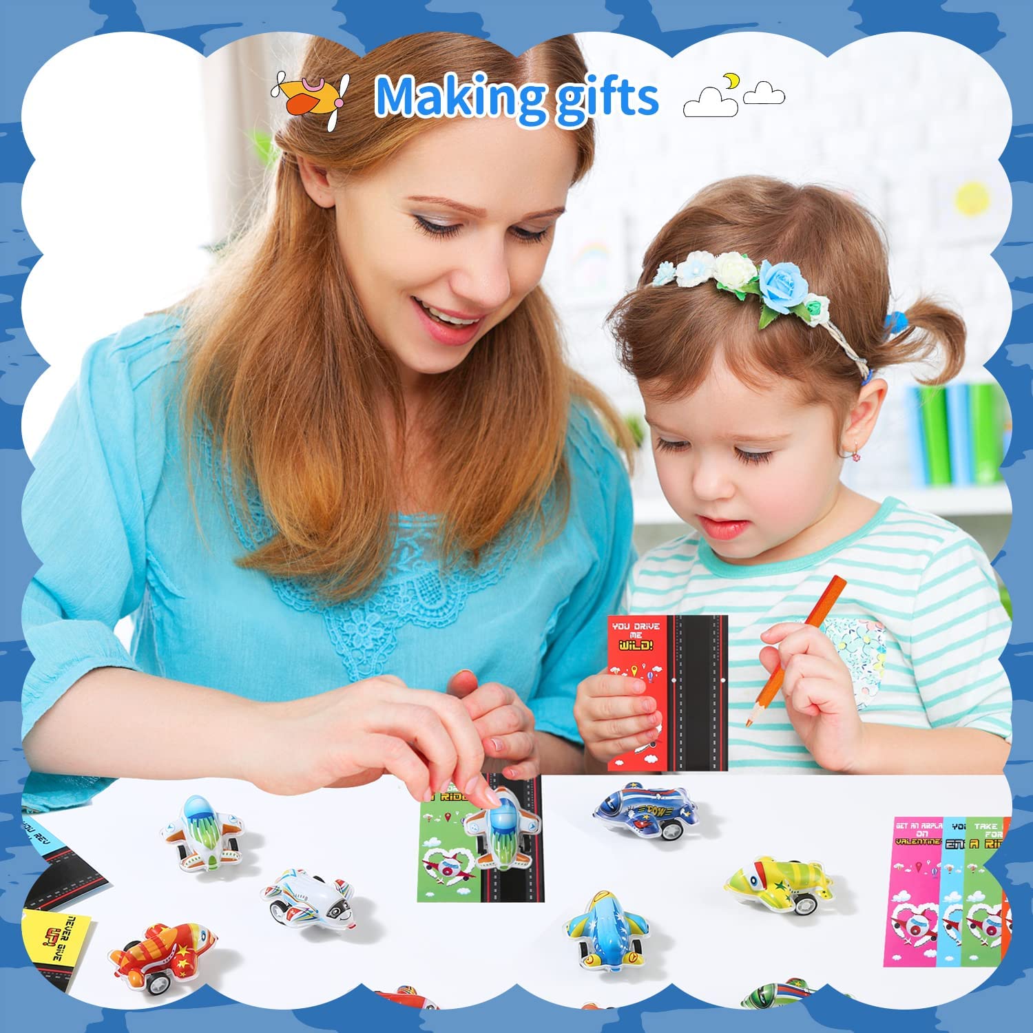 • EASY TO ASSEMBLE: Just use the gold twist-ties to attach one airplane on each valentine's card. No glue required. Assemble it and make the fun begin! Airplane toy is lightweight but durable, high quality and non toxic, easy for kids or toddlers to carry and play.