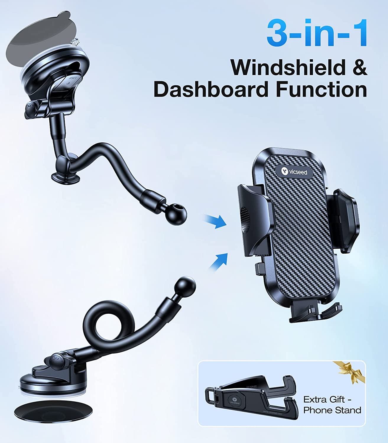 • ?[Ultra Universal, Fits All Cars] Are you not sure which car phone holder mount is better for your car? Don't worry! VICSEED almighty phone mount for car will definitely 100% fit your car. You can always find a place to install it! The flexible long gooseneck can easily bypass the central control screen or other barriers to send your phone close to you. Whether you have a vintage car or new model, electric car, or gas car, this cell phone holder car is the best choice for your car.
