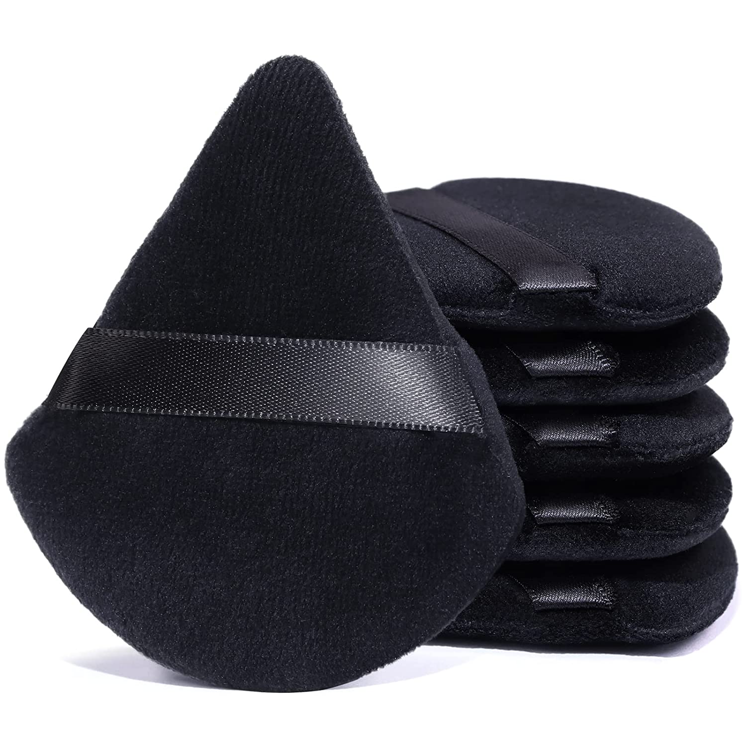 Foonbe Triangle Powder Puff For Loose Powder & Liquid Cosmetic, Soft Plush Powder Puff, Powder Puffs For Face Powder, Makeup Foundation Puff Makeup Tool (Black)