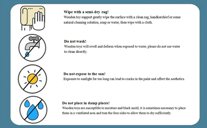 4. To prolong the life of wooden toys, please follow the maintenance instructions mentioned later to protect the toy.