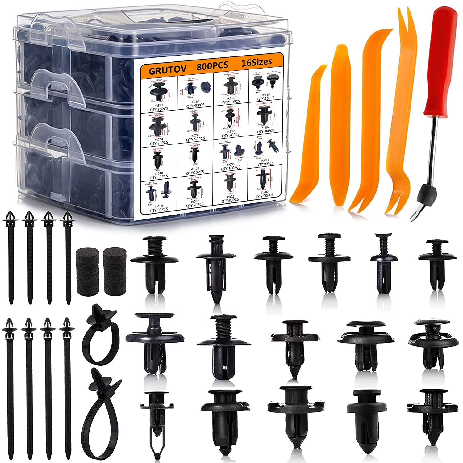 • 【CAR CLIPS SETS INCLUDE】--The car clips include 750pcs automotive clips, 30 spongy cushion, 15 cable ties, 4 plastic fastener remover, 1 fastener remover.