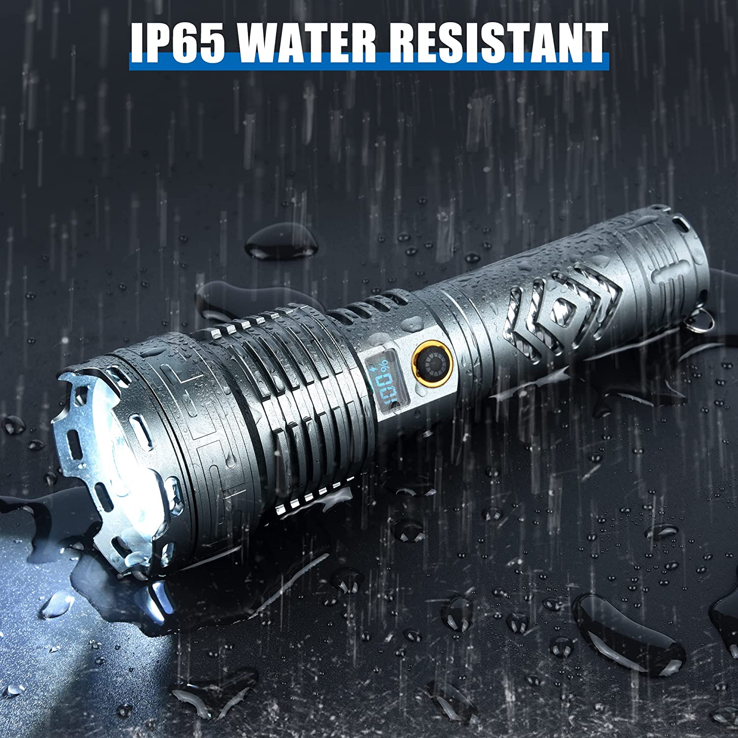 ?【IP65 WATERPROOF FLASHLIGHT】LK360-DS super bright waterproof flashlight adopts a thickened rubber sealing ring, which reaches IP65 waterproof grade. The high lumens tactical flashlight has better waterproof performance and is not easy to be invaded by dust. Water spray from any angle will not affect the use. The normal use of the rechargeable waterproof flashlight can also be guaranteed in severe weather such as heavy rain and snow.