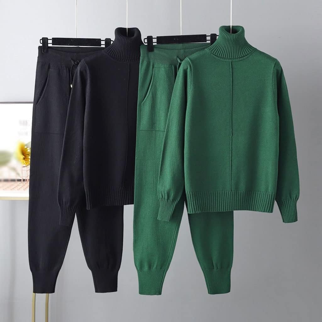 Walnut Two Pieces Cashmere Wool Suits Female Turtleneck Warm Knit Tops and Casual Pants Sets (Color : Gray, Size : 1)