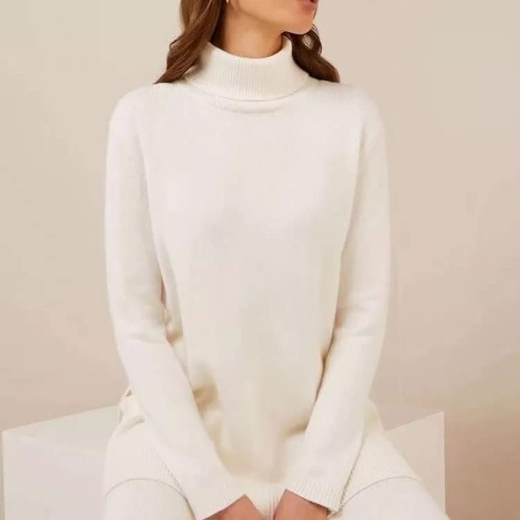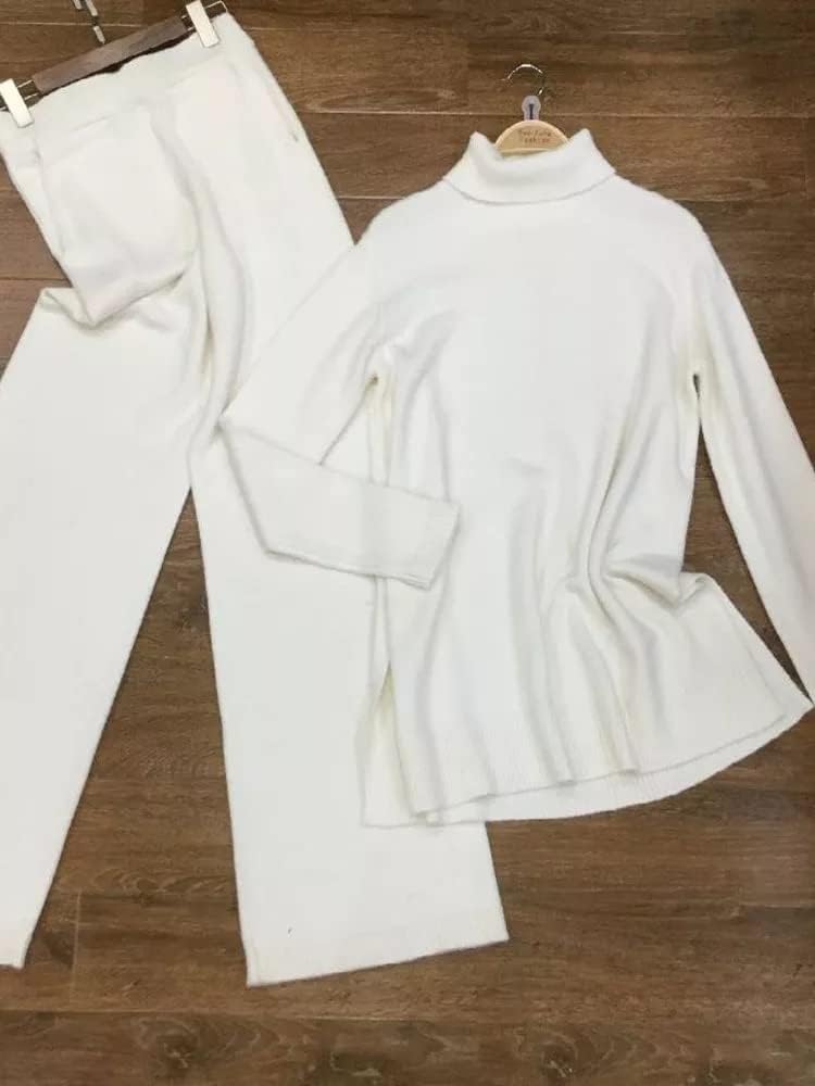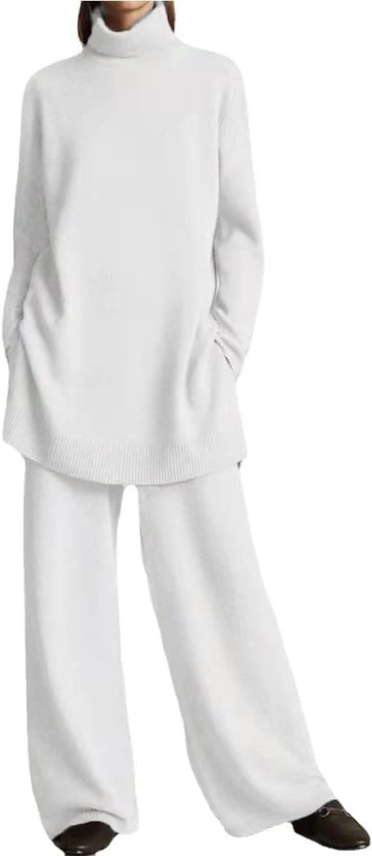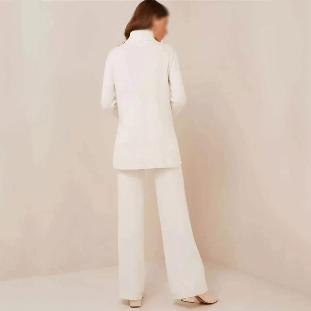 Walnut Autumn and Winter Knitted Solid Color Turtleneck Loose Sweater Wide-Leg Pants Casual Two-Piece Suit (Color : D, Size : S Code)