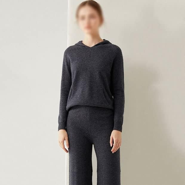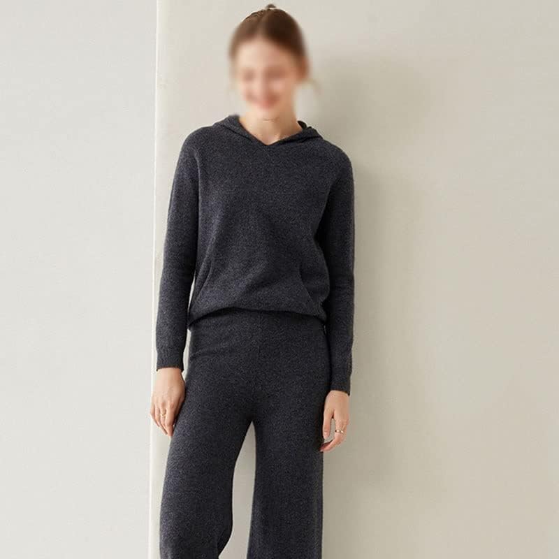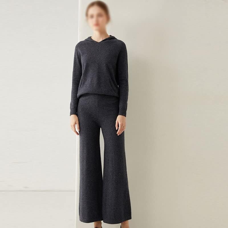 Walnut Two Pieces Cashmere Wool Suits Female Hooded Knit Sweater Set Warm Cashmere Knit Tops and Wide Leg Pant Sets (Color : D, Size : L Code)