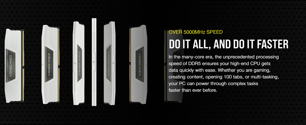 - Do it All, and Do it Faster: As modern CPUs feature more and more cores, the unprecedented speed of DDR5 ensures your high-end CPU gets data quickly, enabling faster processing, rendering, and buffering than ever before.