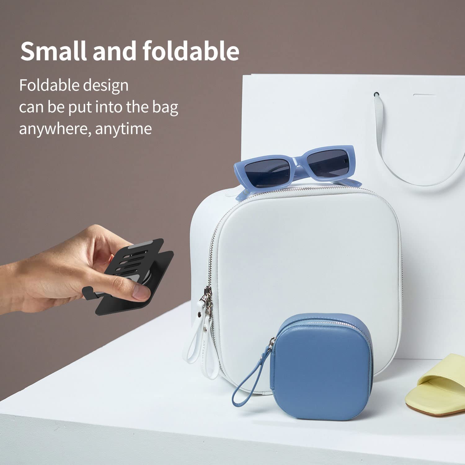 [Easy to Charge and Carry]: This mobile phone stand is designed with a charging cut-out on the bottom which can be used to work while charging. This 360 rotating phone stand folds easily to a nice compact size for storage or transport