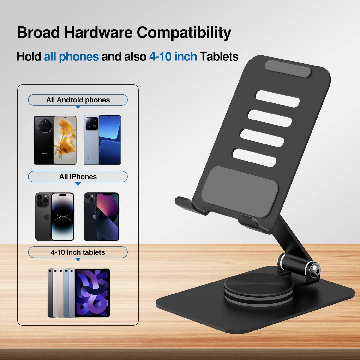 Vekesen Adjustable Foldable Cell Phone Stand 360° Rotating Cellphone Stand Holder iPhone Stand Compatible with All iPhone iPad Tablet 4-10'' Office Desk Accessories (Black)
