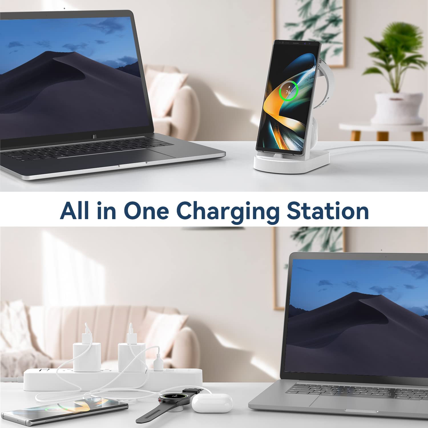 【3 in 1 Charging Station】Our charging station can charge for Samsung Galaxy watch, Android phone and earbuds with just one cable, no other cables needed, simplifying your desk and bedside nightstand. Buy 1 DUMTERR Charging Station for Samsung devices, you can enjoy the convenient it brought.