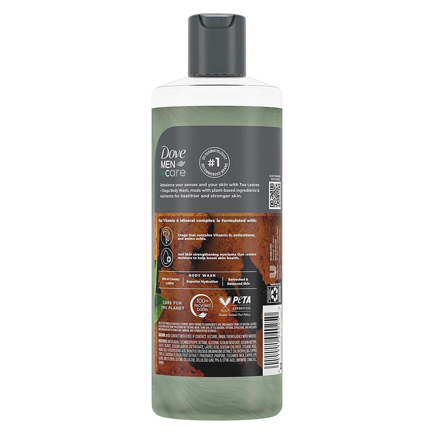 Transform your skin with every shower into a caring routine for your skin, with the Dove Men+Care Rebalance Body wash for skin hydration that gently cleanses and nourishes skin. This Dove Men+Care Rebalance Body wash is formulated with tea leaves and chaga to rebalance your senses and provide superior hydration. Chaga contains Vitamin D, antioxidants and amino acids for skin care. Dove Men+Care Rebalance Body wash has plant-based ingredients and nutrients for healthier and stronger skin. This moisturizing body wash is infused with our Vitamin & Mineral Complex to restore moisture and boost skin health. Our paraben-free and sulfate-free body wash is made with plant-based moisturizers to transform even the driest skin in just one shower. Squeeze a generous amount of Dove Body wash into your palms. Massage the hydrating body wash onto your skin, taking a moment to enjoy the rich lather before rinsing off. This sulfate free body wash is Certified Cruelty-Free by PETA, vegan and is made in 100% recycled plastic bottles, so you can feel good about switching to Dove. Dove care goes further than moisturizing skin care with PETA Cruelty-Free certification and 100% recycled plastic bottles.