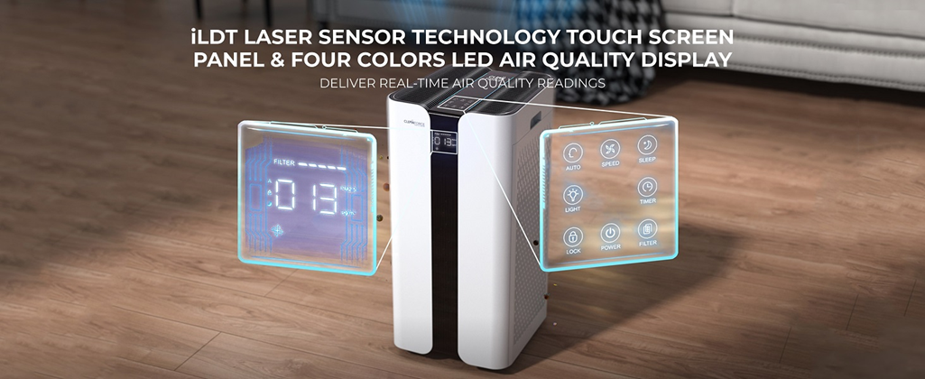 - <b>SIMPLE TOUCHSCREEN & REMOTE CONTROL OPERABLE:</b> Easy touch screen controls with smart auto mode, 4 fan speeds, 12-Hour Timer, sleep mode, 4 colors LED air quality display, auto on/off, and child lock. Enjoy the flexibility of controlling your air purifier with a remote.