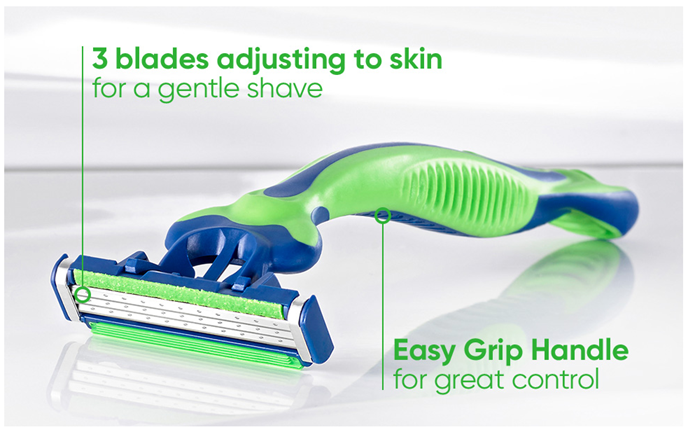 • Up to 10 gentle shaves per razor