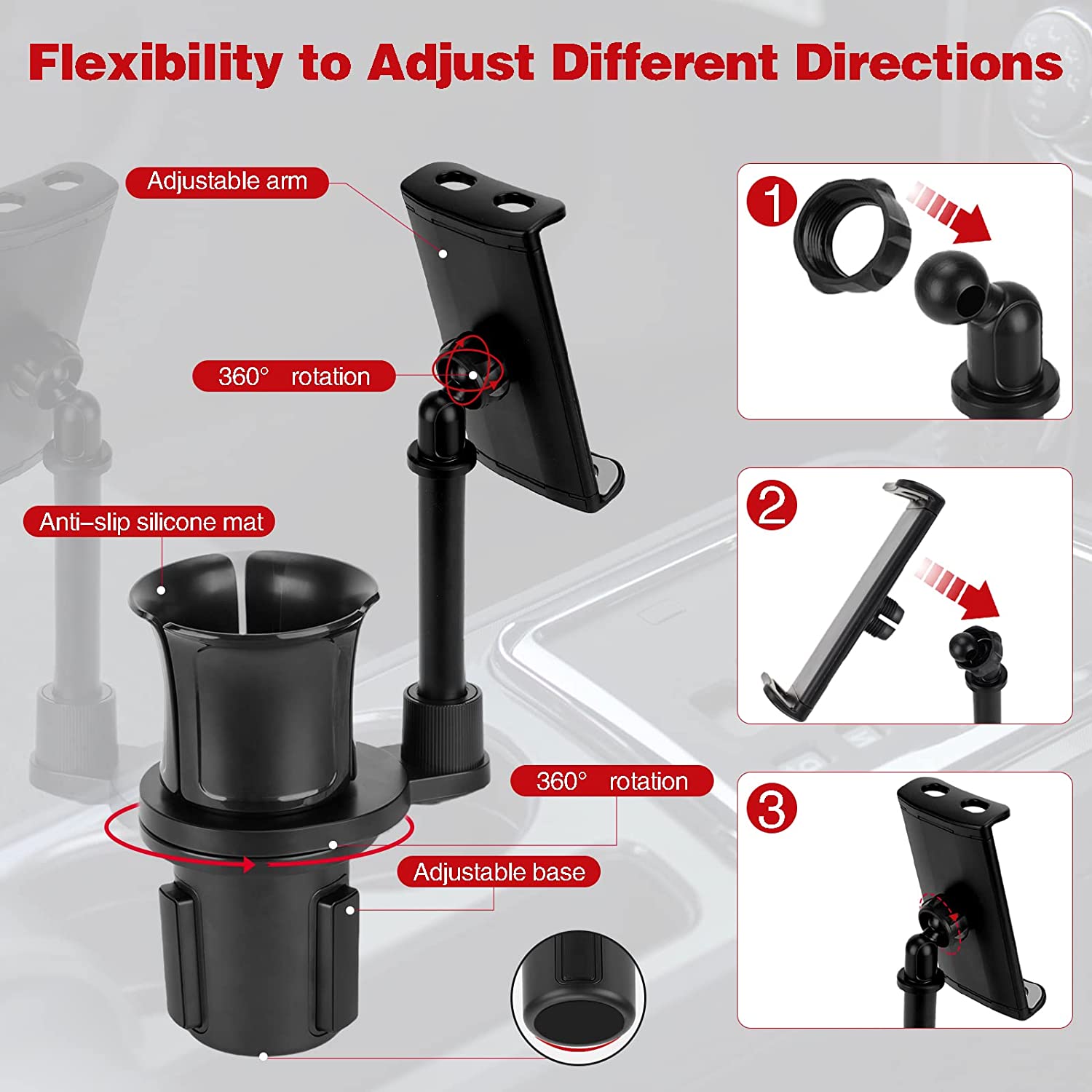 【360°Rotating & Adjustable】The cup holder phone holder mount uses a one-piece aluminum alloy rod that is rock solid. Compared with the gooseneck cup phone mount for cars and the crank arm cup holder car mount, the sturdy straight rod will not shake or bow on bumpy roads. The car phone mount head can be rotated at 360° and can be adjusted to suit your position. Inserting the cup holder just rotate the vane clockwise to expand the size of the bottom adapter and firmly fix the base.