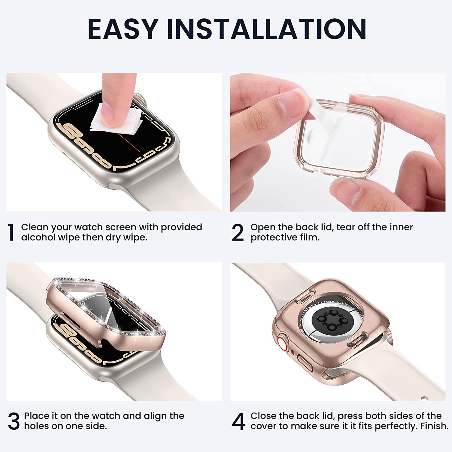 [COMPATIBILITY] Designed for Apple Watch Series 8 41mm & Apple Watch 7 41mm, please choose the suitable model by you need. Bling diamonds cover with screen protector, protect and stylish your Apple Watch! NOTE: Not fit for Apple Watch 8 45mm & Apple Watch 7 45mm (Choose the other size variation), Apple Watch SE 2022 Series 6/ 5/ 4 40mm or 44mm, Series 3/2/1 38mm or 42mm.