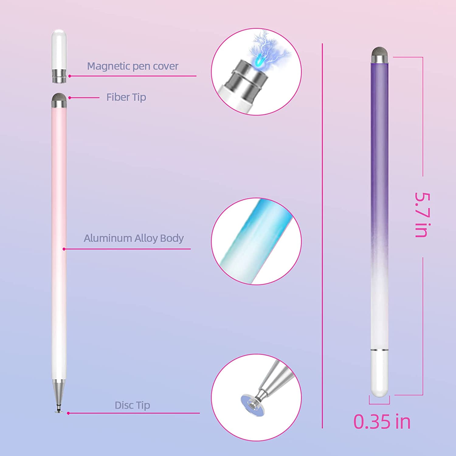 Stylus Pens for Touch Screens, 2 in 1 Stylus Pen for iPad with Precision Disc & Fiber Tip, Capacitive Stylus with Magnetic Cap, Compatible with All Touch Devices (2 Pcs) (Purple/ Pink)
