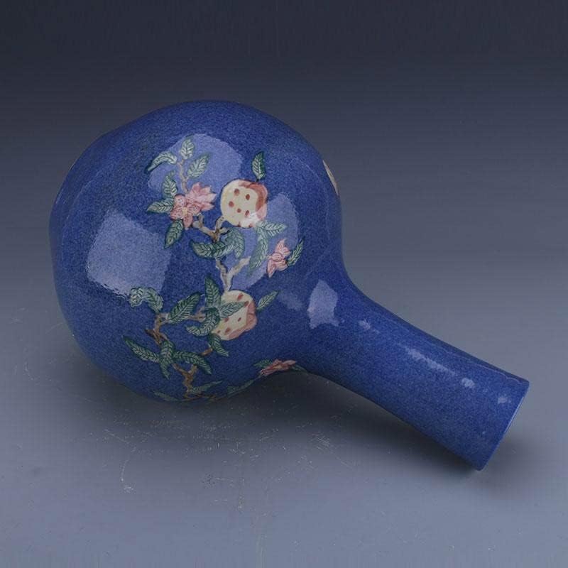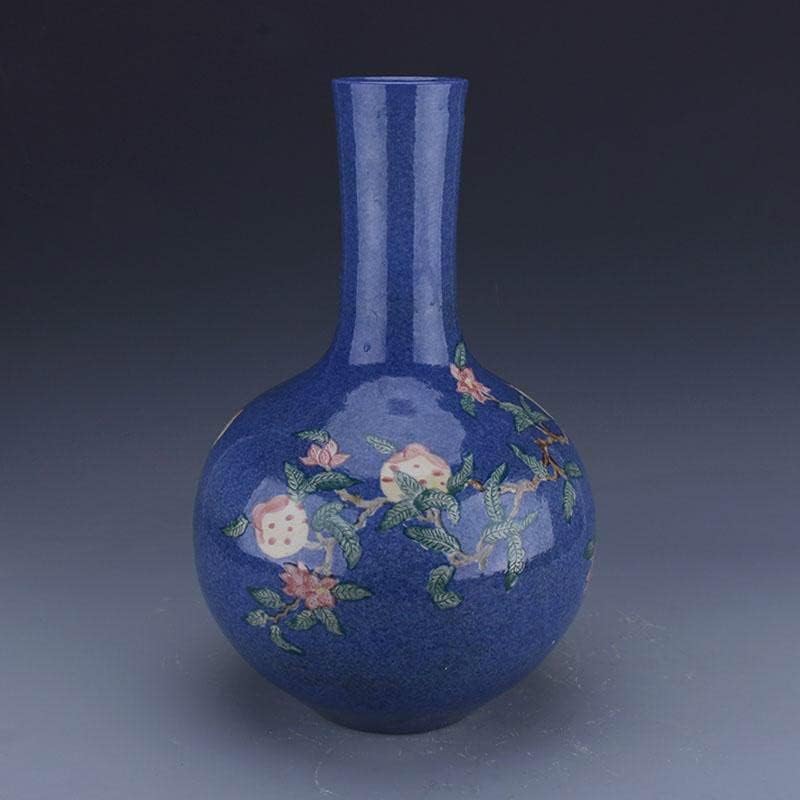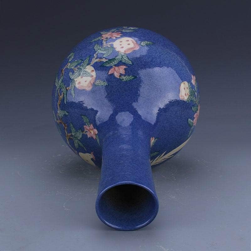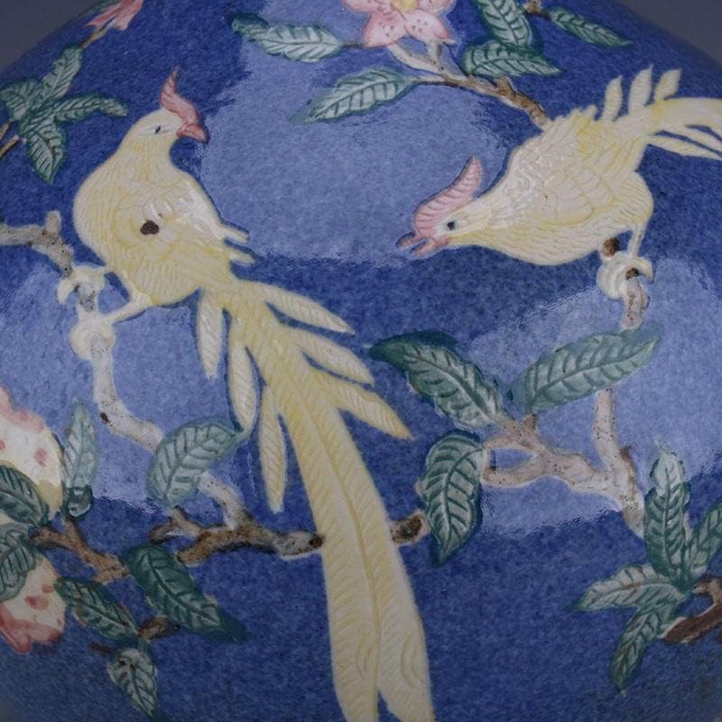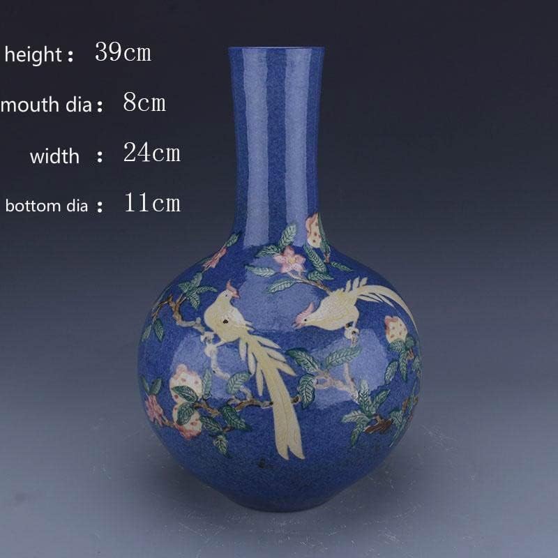 HOUKAI Antique Vase Traditional Chinese Style Blue Ceramic Snowflake Bird Flower Vase for Home Office Decoration