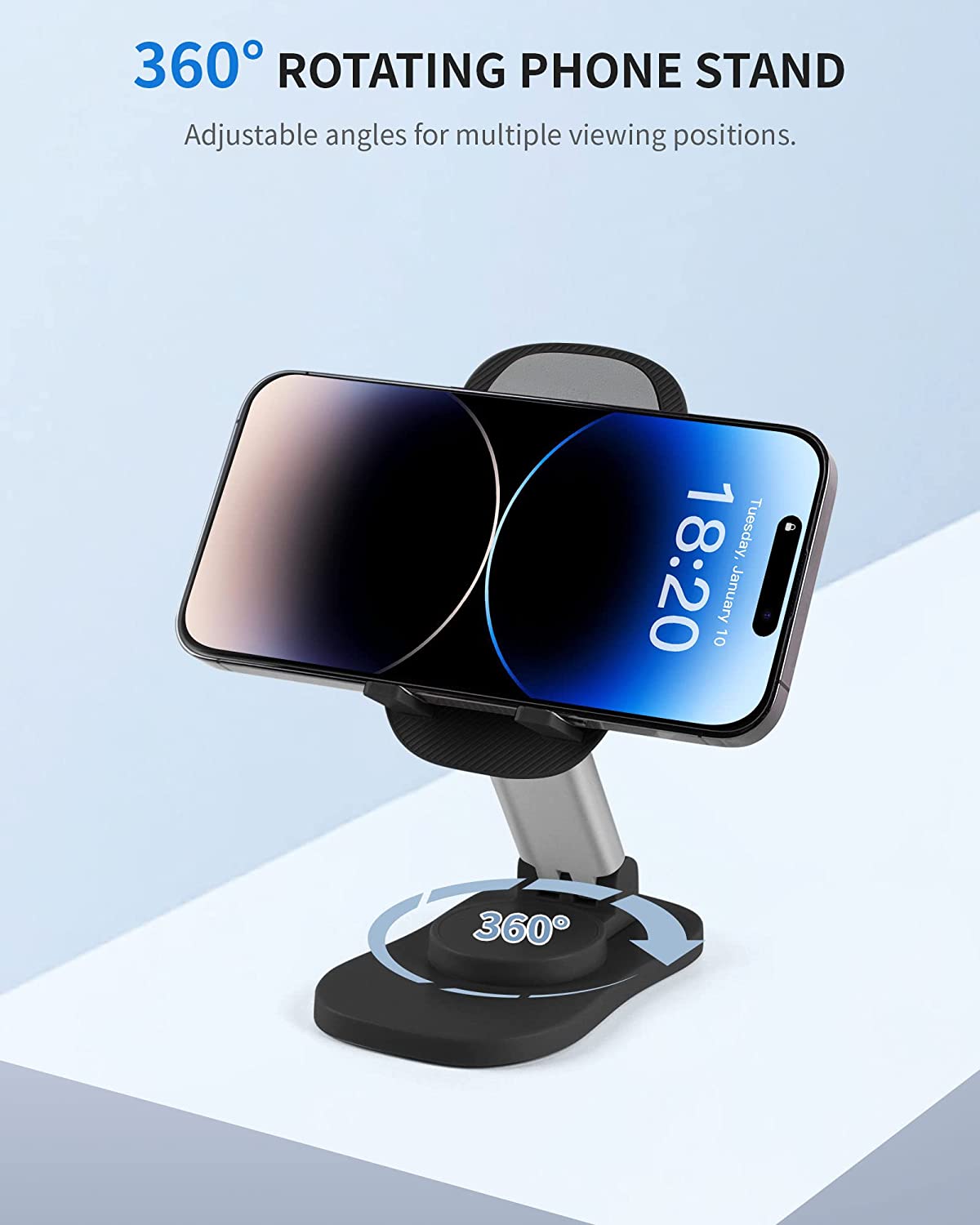 360° ROTATING PHONE STAND - With a thickened 360°rotating base, it can be rotated to any desired comfortable angle. Comes with cool gear sound effects when rotating which enables you to release pressure. Share your screen with friends and family easily.