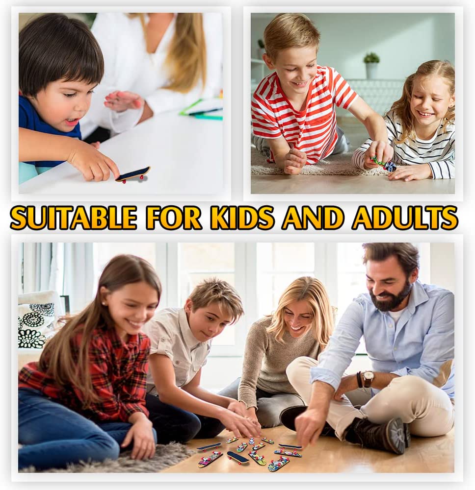 ☆ MINI SIZE & EASY TO CARRY: Each mini finger skateboard is about 3.74 inches long and 0.98 inches wide, and its small, portable size makes it easy to fit in your pockets, wallets, and bags, so whether you travel or work, you can take it to play, which will bring you a lot of convenience and endless fun. suitable for children as well as adults.
