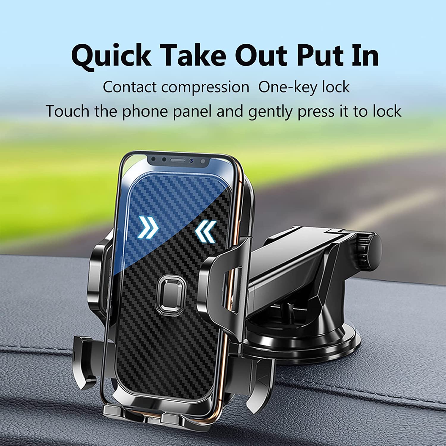 ? High Quality: The holder panel is made of imitation carbon fiber material, PC+ABS Material with better heat resistance, up to 65 pounds suction force firmly grips the dashboard, ensuring that your device will stay firmly in position, even on bumpy roads, sharp turns, or emergency brakings.