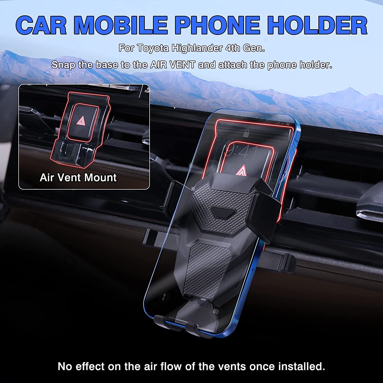 【Fairly Easy to Install】Align, press and snap the phone holder base to the air vent and put the mobile phone holder to the bracket. Please loosen the nut a little when you want to adjust the angle. High quality ABS material with soft rubber pad inside the clamps and bottom foot, safe, sturdy and durable, won’t fall out once installed.