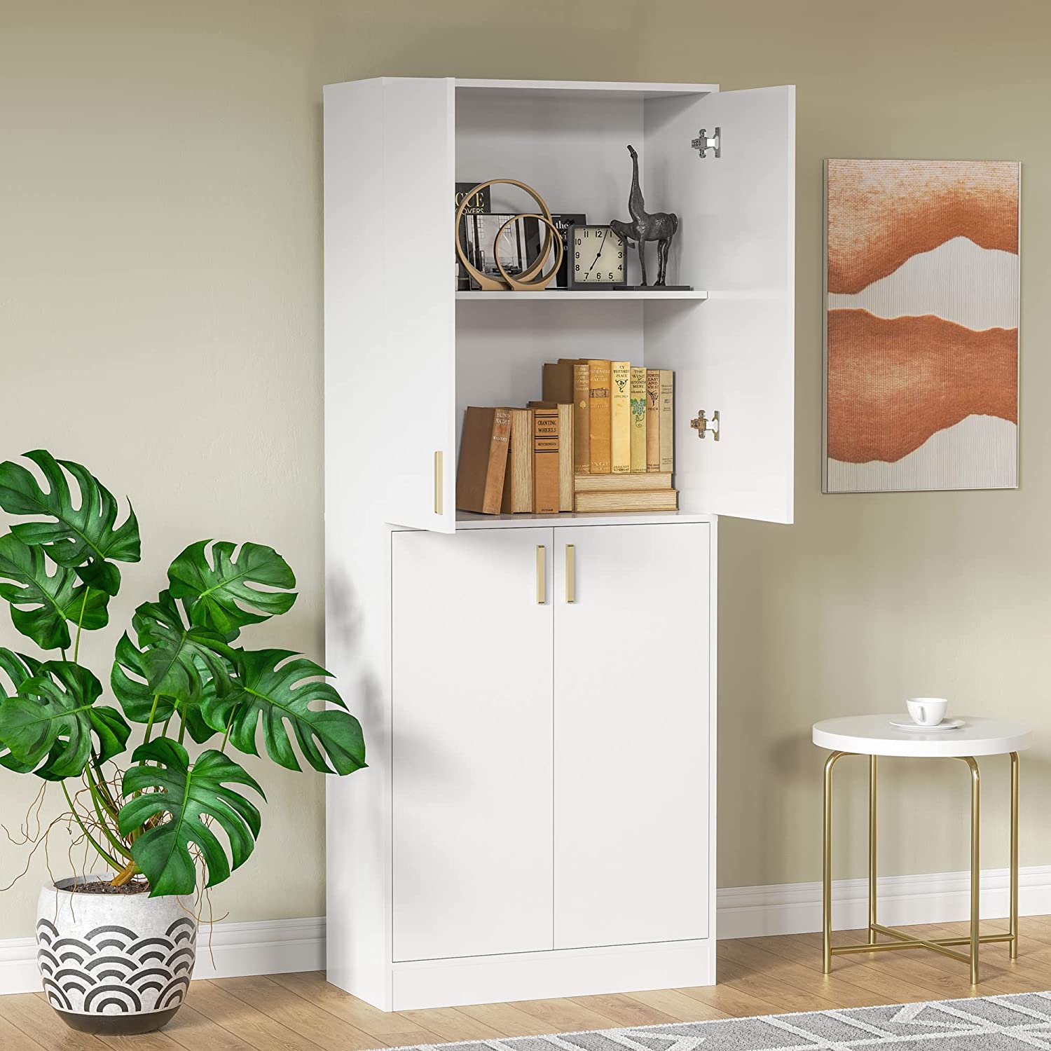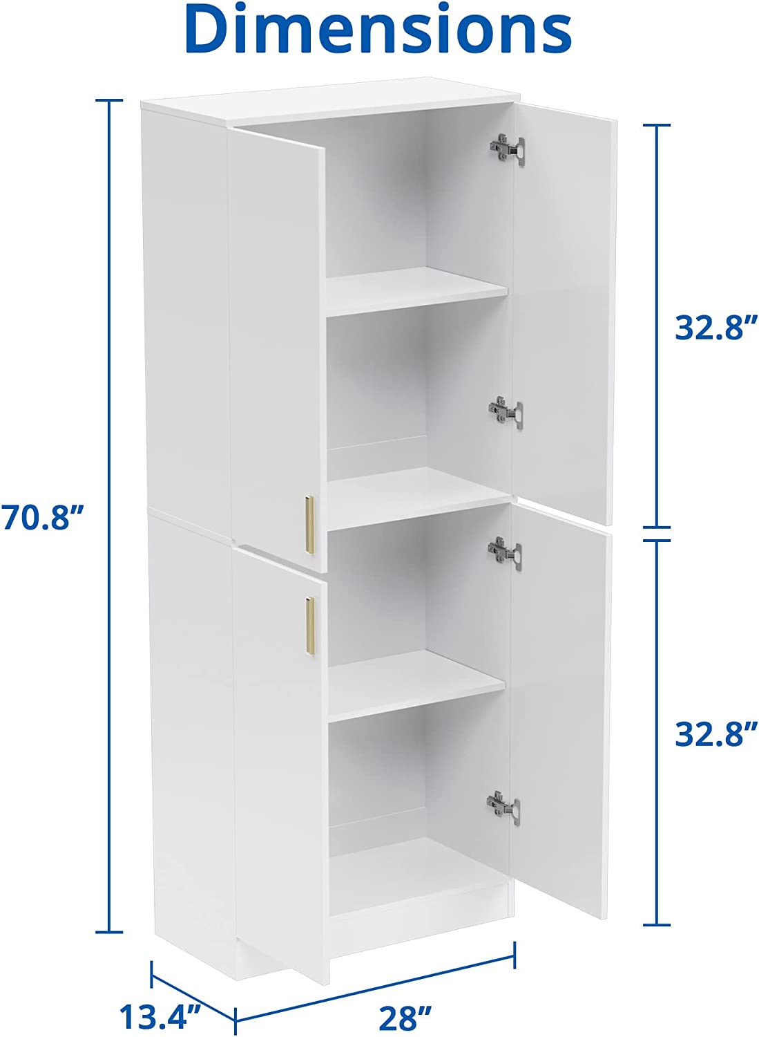 • 【Versatile Design】Overall white with gold accent and elegant Design can meet your aesthetic needs. It can be used not only as a bookcase in your study, but also as a storage cabinet in your kitchen and living room for storing your items. The modern Kitchen Pantry Storage Cabinet is the ideal choice for you to decorate your home.