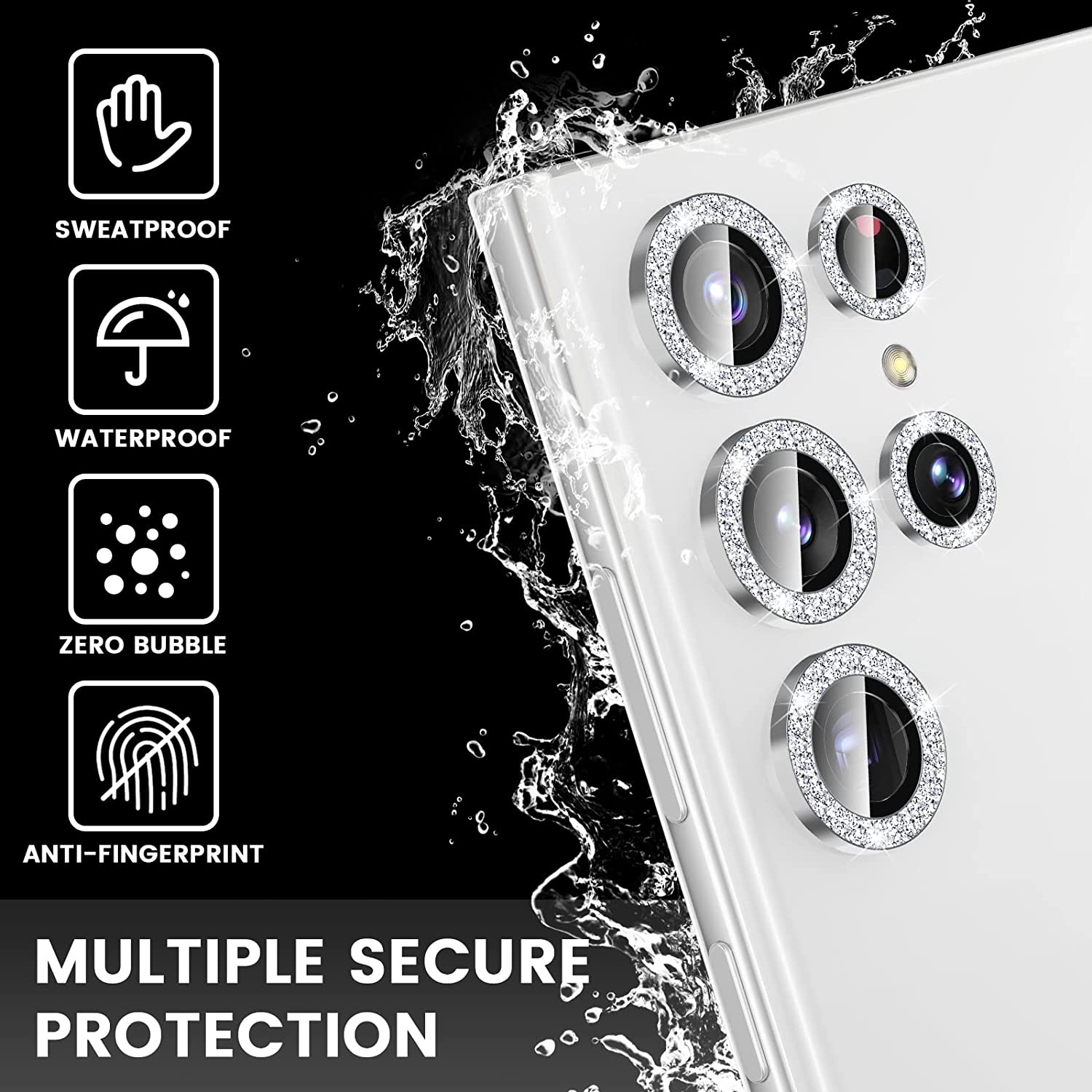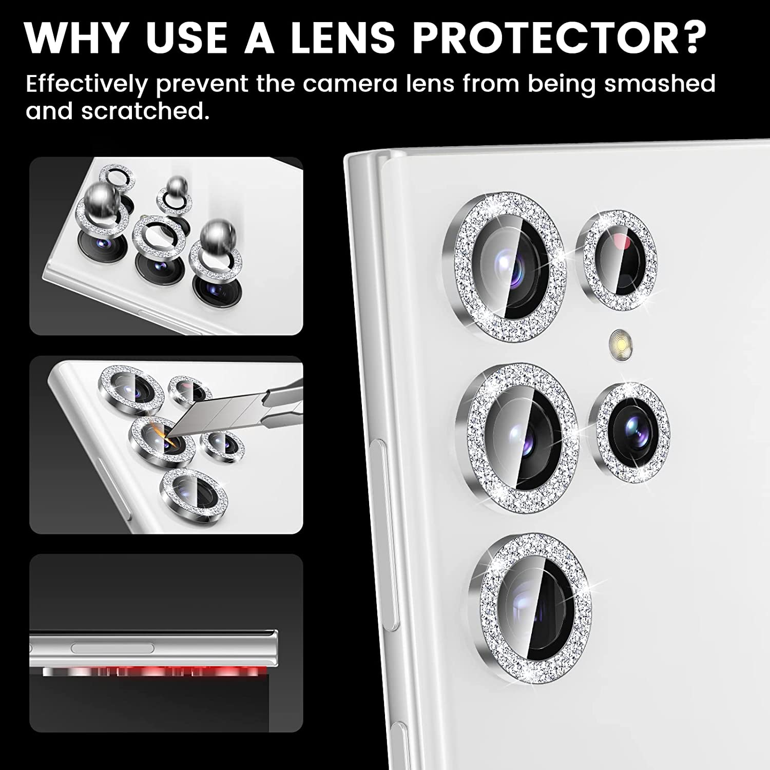 • 【S23 Ultra Camera Lens Protector】 This S23 Ultra camera lens protector used high-quality aluminum alloy metal and glass screen protector, fully protect your lens, effectively preventing the lens from scratched, dust and bumps. Restore the original color of the phone lens, looks as not installed.