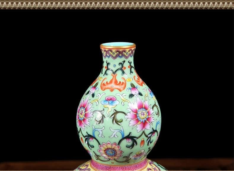 ZLXDP Chinese Style Antique Green Ceramic Flower Vase Collection Jingdezhen Porcelain Gourd Decoration Vase