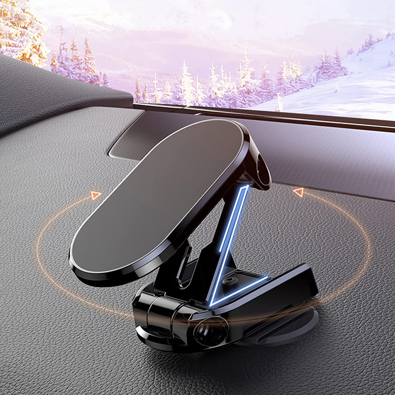 Folding Magnetic Bracket: Paste on the curved surface, stable upgrade, strong suction force, unobstructed view. Retractable, foldable in one second, small and stable, easy to fold when not in use, gets rid of clutter, compact, and does not take up space.