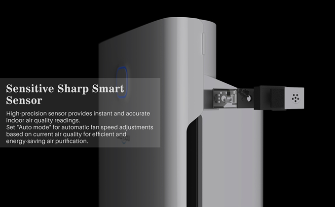 Extra-large air inlet, with the demension of 2.7cm*29.5cm, is designed for taking maximum original air and releasing at least 2X greater airflow. CADR of 250 releases 4164 liters of air output and purifies the room up to 1,000 sq.ft. in one hour, 600 sq.ft. in 30 minutes, 300 sq.ft. in 15 minutes. Be with 10L pro, let's feel the turbo purification and enjoy refreshed air instantly.