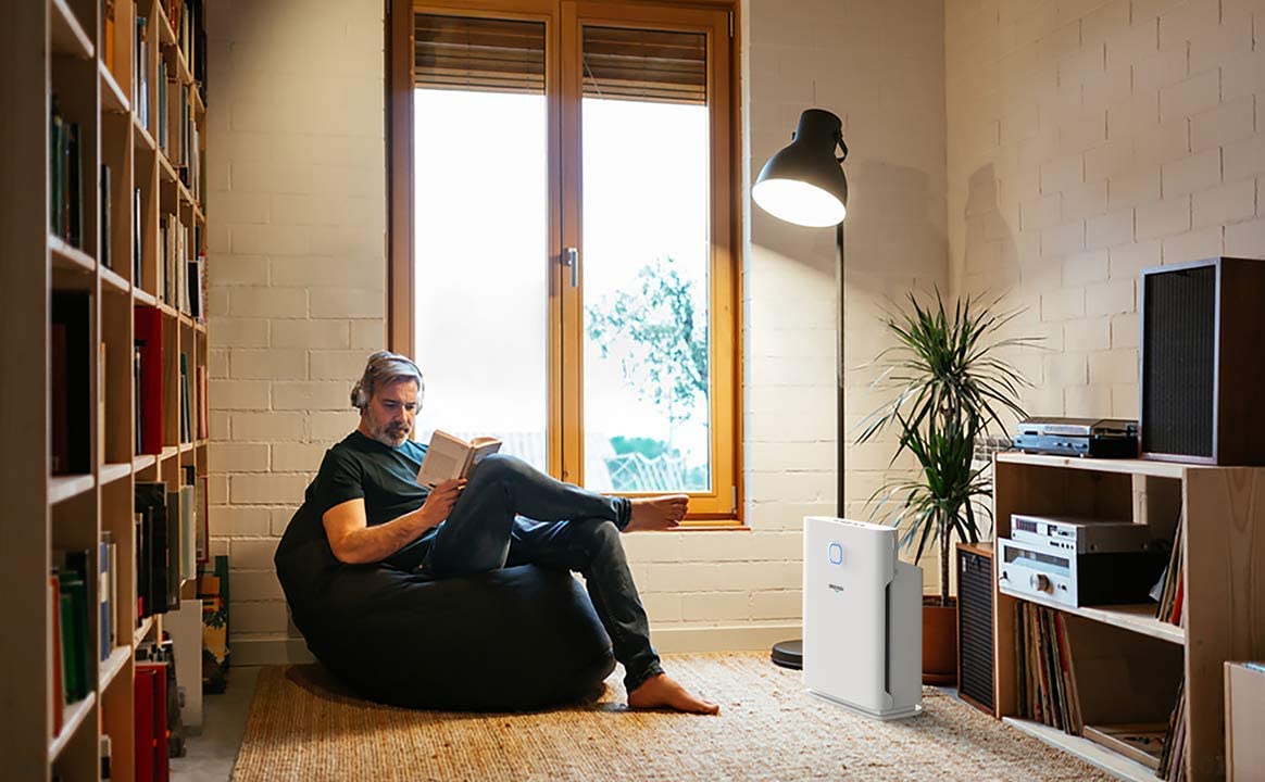 Filters 99.9% of airborne pollutants down to 0.3 microns.