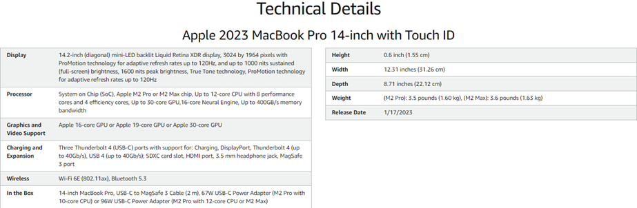 UP TO 18 HOURS OF BATTERY LIFE — Go all day thanks to the power-efficient design of the M2 Pro or M2 Max chip. And the MacBook Pro laptop delivers exceptional performance whether it’s running on battery or plugged in.