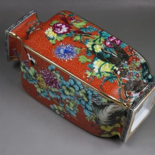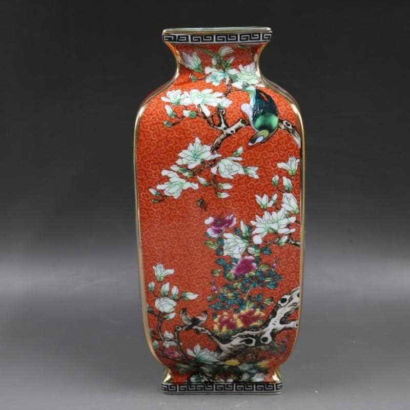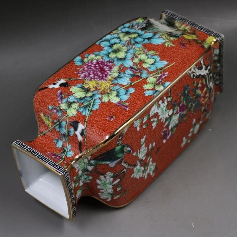 ZSEDP Orange Antique Porcelain Collection of Enamel Colored Flower and Bird Square Antique Porcelain