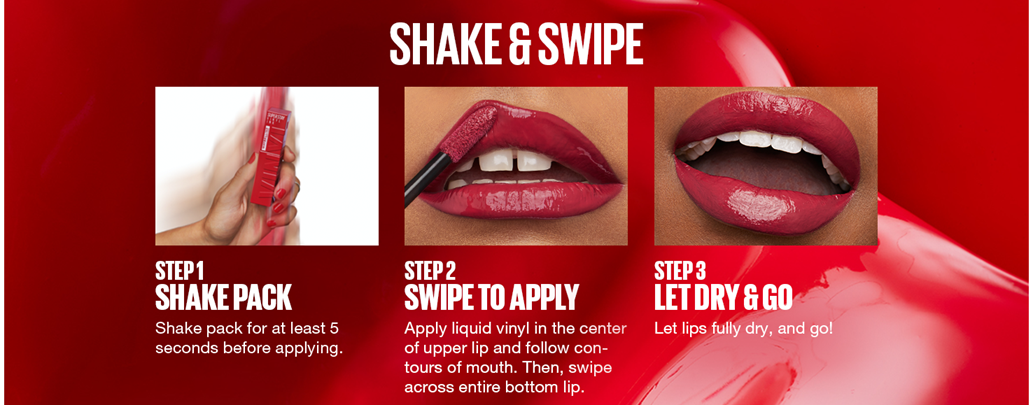 - Glossy Maybelline Superstay Vinyl Ink Liquid Lipstick: This longwear liquid cool red lipcolor delivers no-budge vinyl color and up to 16 hour wear, featuring our Color Lock formula that defies smudging and transfer; Simply shake and swipe