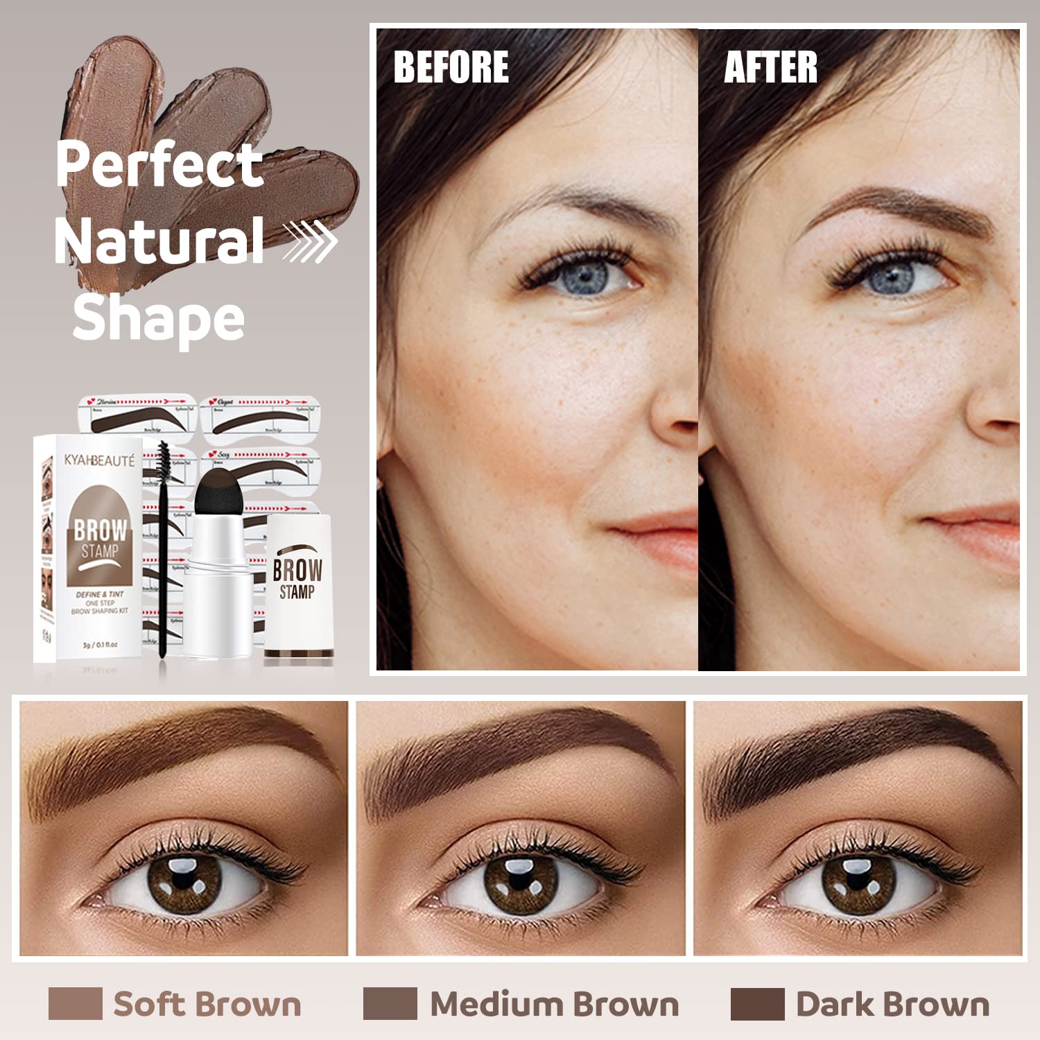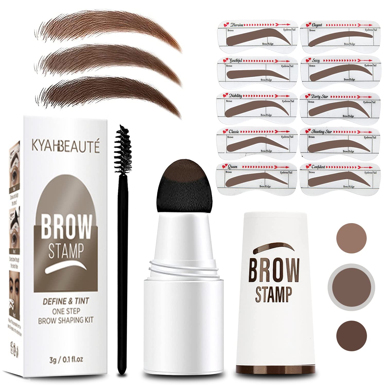 【BEAUTY FOR EVERYONE 】Comes with Ten different eyebrow stencils and three popular colors of stamp to choice: Dark Brown, Medium Brown & Soft Brown, to fit all kinds of eyebrow shapes and face shapes.The newly designed silicone stencil combines the golden ratio of the face and eyebrow bone, which is suitable for various thick and thin eyebrows.