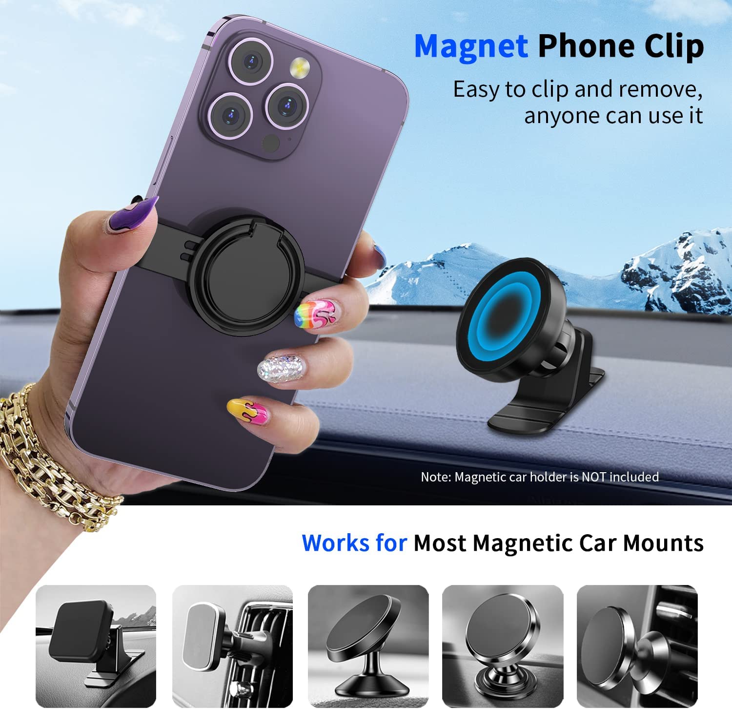Nicwea Magnetic Phone Clamp [Strong Magnet] for Gym Office Any Metal Surface, Cell Phone Clip Ring Grip Holder with Metal Plate for Magnetic Car Mount Compatible with iPhone, Samsung and Cases, Black