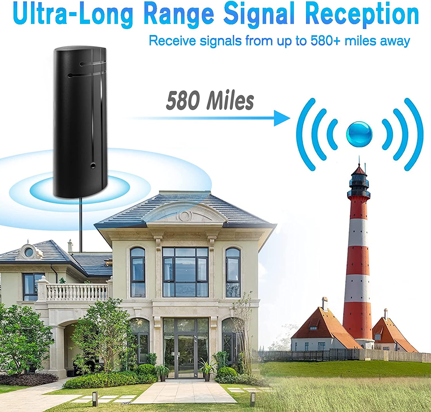 - ?【Up to 580+ Miles Range Reception 】: This hd tv antennas built-in the most advance Smart IC Chip and Powerful Amplifier Signal Booster. Using unique technology that optimizes signal transmission and avoids interference from other signals, it greatly increases the received signal range by up to 580+ miles, allowing you to enjoy the most TV channels for free.