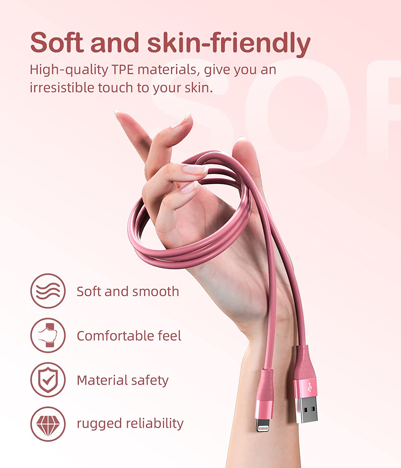 ?【Superior Durable and Strong】High-quality TPE material makes this cable more durable and stronger than ordinary iPhone charger cables, while being flexible and tangle-free. It is tested for up 30,000+ bends, making it more durable. Withstand all kinds of daily connection needs and long-term use.