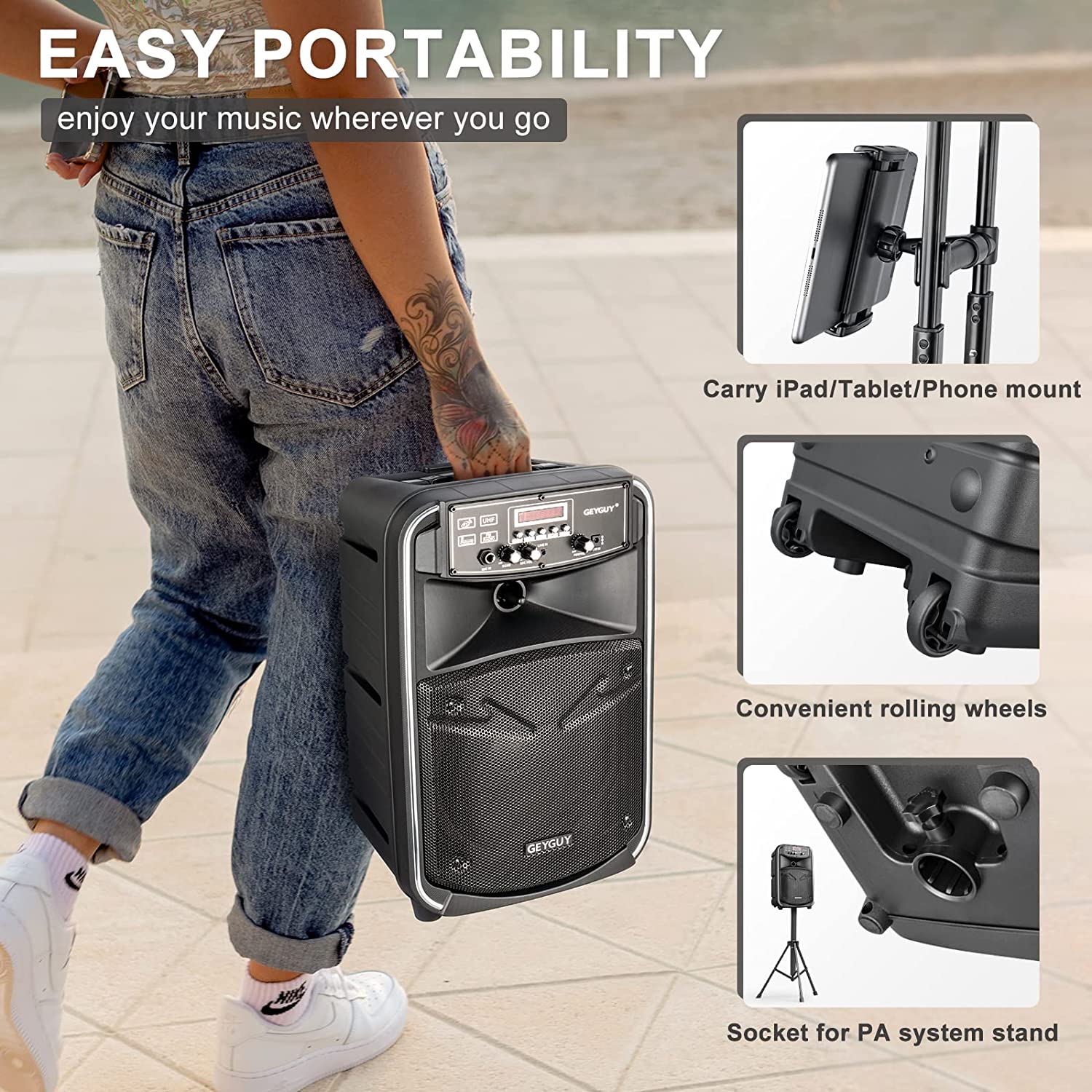 Yes, the electric guitar/electric instruments can connect to our PA speaker via MIC IN port. For acoustic guitars, you can buy our GTSK8-2 double microphone set. One of the UHF microphones can be used as a pickup with very high sound quality reproduction.