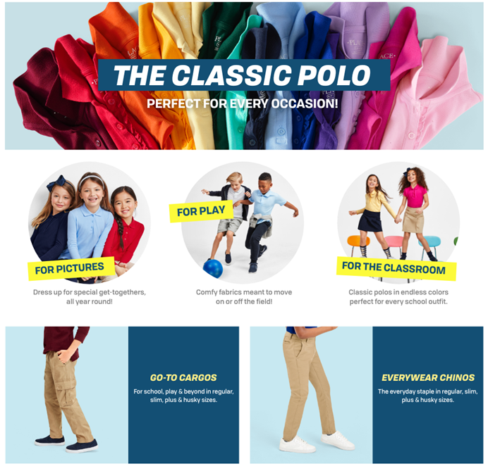 • The Children's Place offers value-priced clothes and apparel that are fun and easy to put together