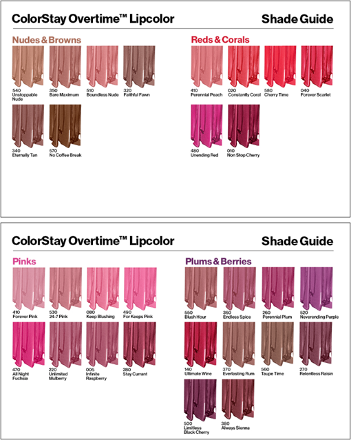 The REVLON ColorStay Overtime Lip color coats your lips with full coverage color and shine for up to 16 hours with no touch ups needed! This semi permanent lip color with color lock technology won't kiss off, feather or bleed. The glossy topcoat is enriched with chamomile and soy extract for moisture rich, shiny, soft lips. Claim based on Nielsen Scantrack Service for lip makeup brands for YTD WE 12/31/2016, Total US and xAOC. Copyright 2016, The Nielsen Company. By REVLON.