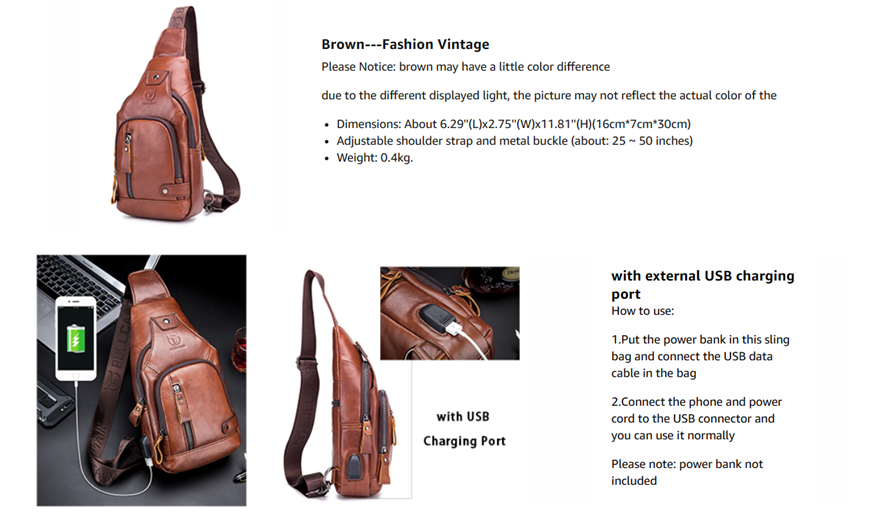 • Excellent Design: with external USB charging port (power bank not included), with hole for earphone wire. this men casual crossbody daypacks has two stainless steel drings on the back. you can choose the left or right side according to your usage habits. you can wear it like a chest bag/shoulder bag/shoulder bag. It's safe, stylish, convenient, lightweight and comfortable.