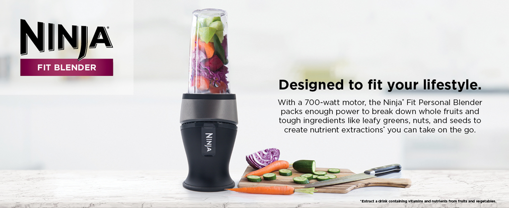 The Ninja Fit combines multiple kitchen appliances in one easy-to-use, powerful and compact kitchen tool. With Ninja Pulse Technology, it quickly creates smoothies, nutrient juices and so much more in two 16 oz. Nutri Ninja cups that are perfect to take on the go.