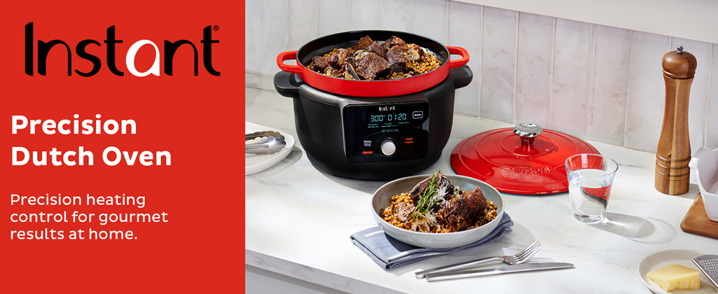 The Precision Dutch Oven gives you precise control for braising, searing/sautéing and slow cooking, delivering gourmet results for your meals. The heavy-duty cooking pot and lid are made from cast-iron, with a durable enamel coating for long life and beauty. The cooking pot can be removed from the cooker base, so you use it on the stovetop or in the oven, and it’s beautiful on the table for serving. Get pro results easily with the Precision Dutch Oven.